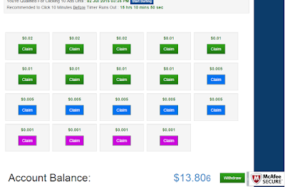 Secara singkat berikut adalah penjelasan cara mainnya : setelah anda mendaftar diweb tersebut maka anda akan mendapat iklan yang harus anda claim setiap harinya yang nilainya $0,01 | $0,005 | $0,001 jika anda telah mengclaimnya maka itu akan masuk ke balance anda. Nah dalam 1 hari anda akan mendapat penghasilan minimal $0,10 / Rp 1.400. Nah untuk memperbanyak penghasilan dalam 1 hari silahkan inbox saya melalui facebook https://www.facebook.com/iputu.chandraCara mainnya?